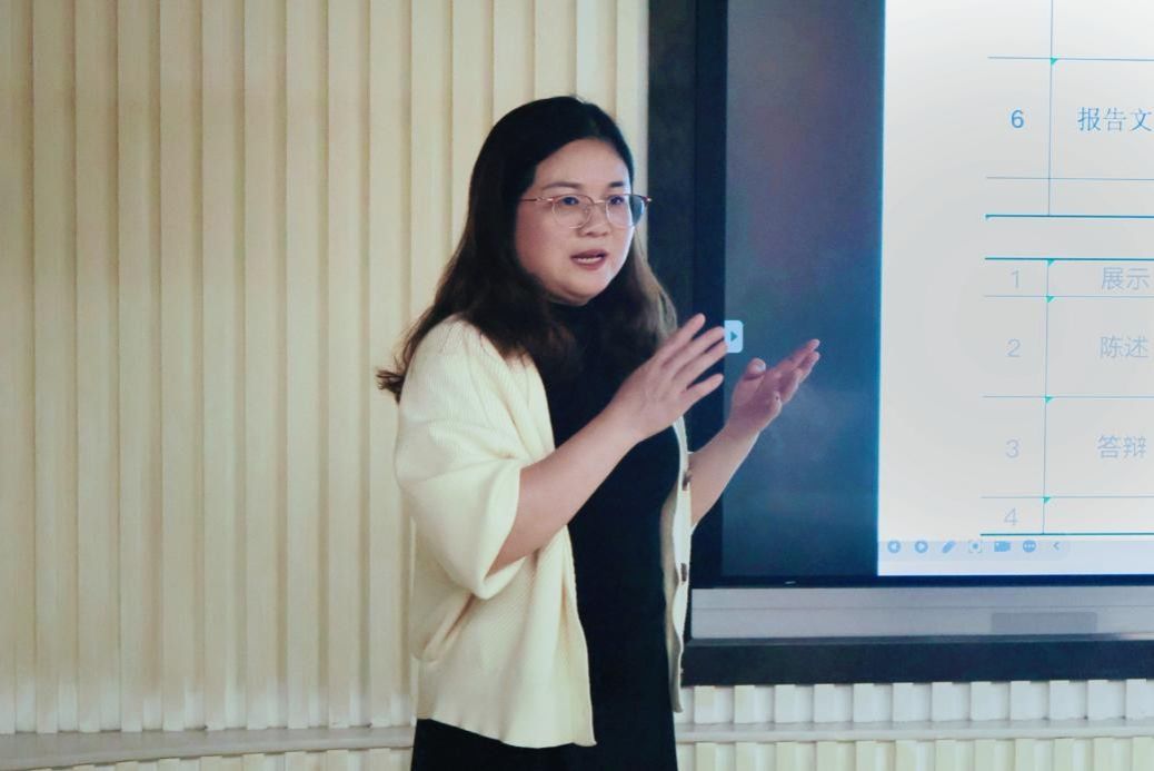欧辉老师从往届成绩、比赛规则、选题组队、作品打磨、答辩技巧五个方面对赛事进行说明。她回顾了我校在过去几届比赛中的获奖情况,并对比赛规则进行详细阐述。她提出,同学们可以选取具有地域特色的产品作为研究对象,同时建议同学们跨专业组队。对于作品打磨,她从调查的可信度、数据的支撑度、报告的美观度等方面进行指导。针对答辩技巧,她表示,同学们可以通过情景剧引入等方式为答辩环节增添亮点,并播放获全国一等奖队伍的答辩视频作为参考。同学们就“能否把对某一社会现象的研究作为选题”等问题提问,她逐一解答,并鼓励同学们积极报名、认真准备,在比赛中取得优异成绩。