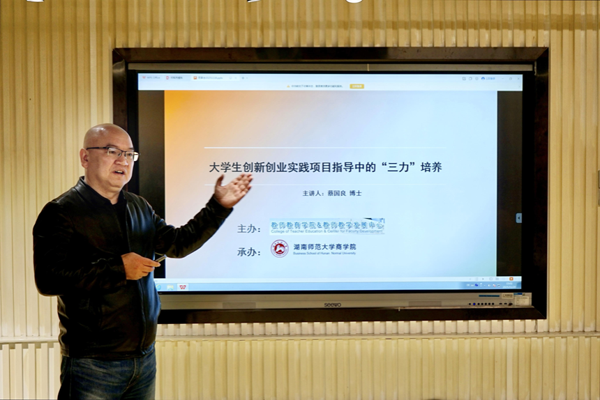 互动研讨环节中,参会教师围绕跨学科资源协同、教师创业指导能力提升等话题展开交流。蔡国良针对师生提出的疑问逐一细致回应,分享了实操性强的解决方案与优化思路,现场形成了“经验共享、思路互通、问题共解”的良好氛围。