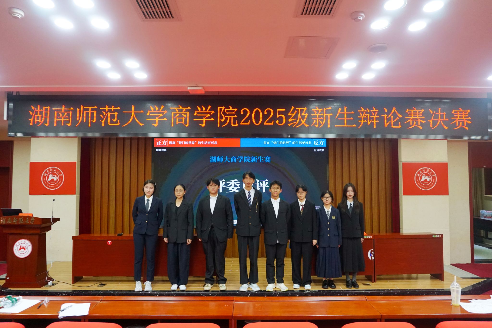 (通讯员 何畅 马琳洨 彭浩然)11月7日晚,我院学生会联合我院辩论队在中和楼129报告厅举办2025级新生辩论赛决赛。此次辩论赛邀请长沙理工大学辩论队队长栗晓轩,湖南师范大学辩论队队长林天悦、副队长邓迦勒担任评委,2025级辅导员徐家松、王劼璐参加此次比赛,我院辩论队队员刘雅宁、孙千牵担任此次比赛的主持人。