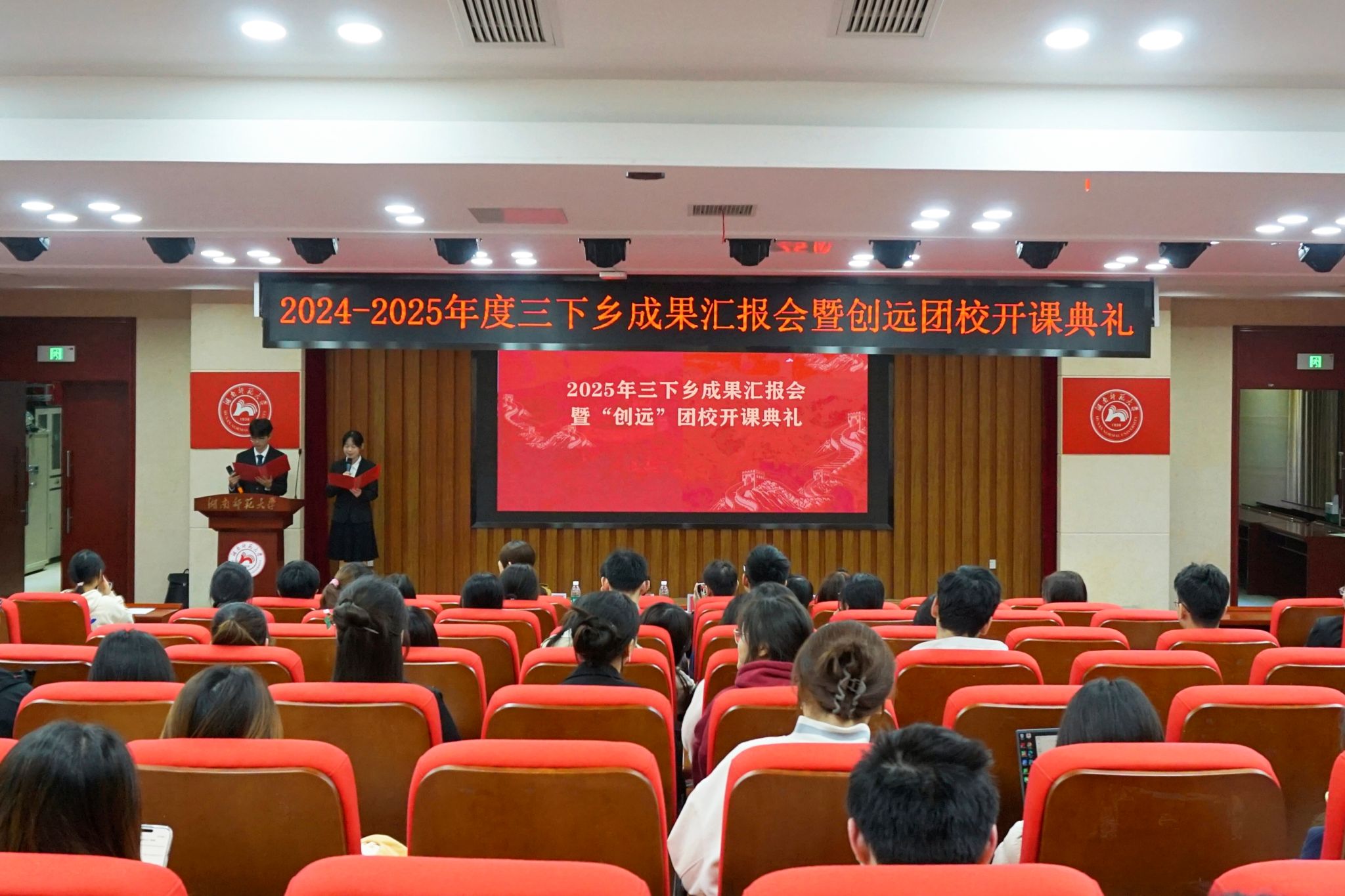 (通讯员 卢艺婷 马琳洨 韩至远)11月14日晚,我院在中和楼129报告厅举行2025年三下乡成果汇报会暨“创远”团校开课典礼。我院团委书记郭书畅,2023级辅导员蒋思睿、2024级辅导员梁绮珈、2025级辅导员徐家松出席此次活动。2024级本科生全宇翔、2025级本科生温爽担任此次活动主持人。