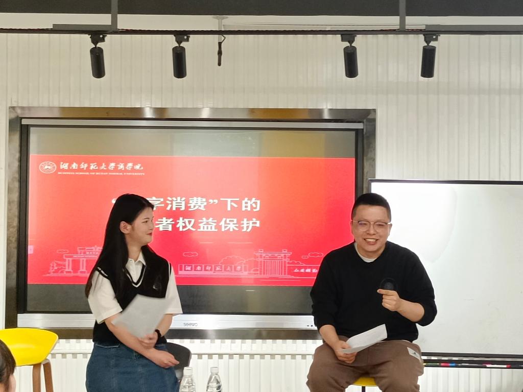 活动开始,何佳鑫对此次座谈会的特邀嘉宾谢迟进行基本介绍。随后,谢迟向同学们阐明了数字消费的内涵,并向同学们分享自身的维权经历,以三则亲身案例为同学们讲解如何在生活中有效维护消费者权益。谢迟强调,同学们在日常消费中维护自身权益,可通过消费者保护协会、12315小程序等途径投诉,应加强法律意识,通过制造舆论压力等方式维权。最后,进入提问与答疑环节。同学们积极分享自身维权经历,提出维权困惑。谢迟依次解答同学们的困惑,强调购买契约精神,并提出一系列指导性建议。