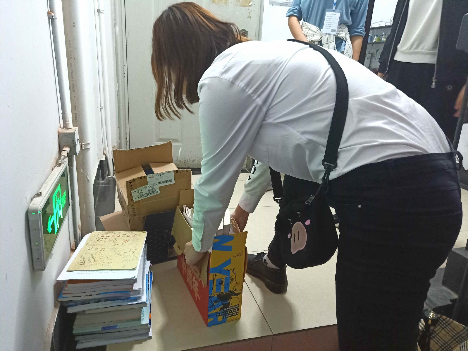 20名同学提前10分钟在食堂门口集合。活动开始前,负责人讨论并分配小组和各小组的负责楼栋。活动过程中,每3名志愿者为小组单位下寝回收纸箱和废旧衣物。志愿者们礼貌敲门,微笑表明自己来意,并对唐突的打扰表示歉意。同学们都友好地拿出自己闲置的衣物和快递纸箱给志愿者,对他们的服务表示感谢,也赞许此次活动有意义。临近结束,志愿者们把收集到的纸箱和衣物汇集到自己负责的楼栋一楼,折叠整理纸盒后按宿管阿姨安排交给废品回收的人员,并将收集到的衣物放进爱心捐赠箱。