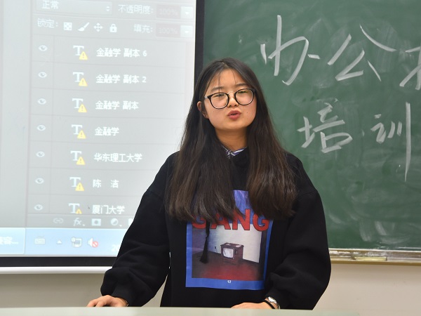 4月3日中午,商学院于中和楼213教室开展办公技能培训会。此次培训会由商学院青年发展工作部部长冯聪慧主持。