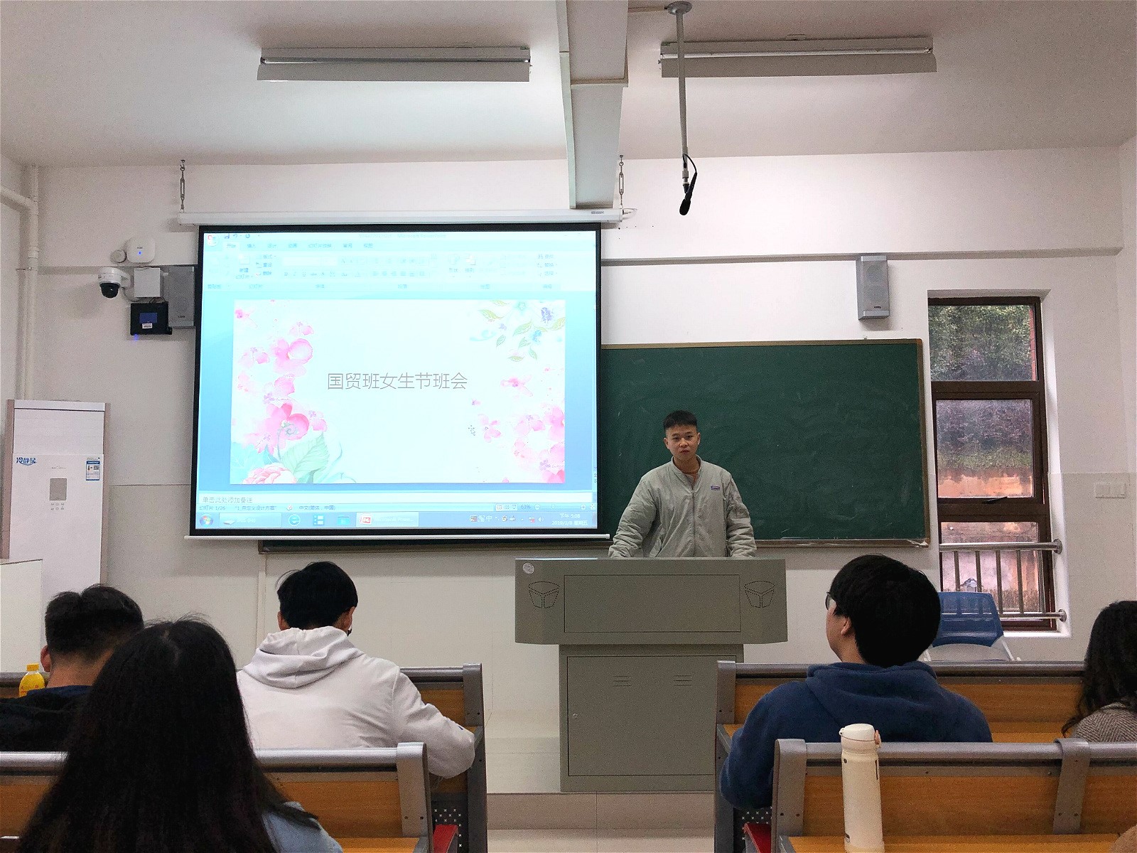 3月6日下午,17级国贸班在中和楼111教室开展女生节主题班会,此次班会由文艺委员李翔与社团委员何健主持。