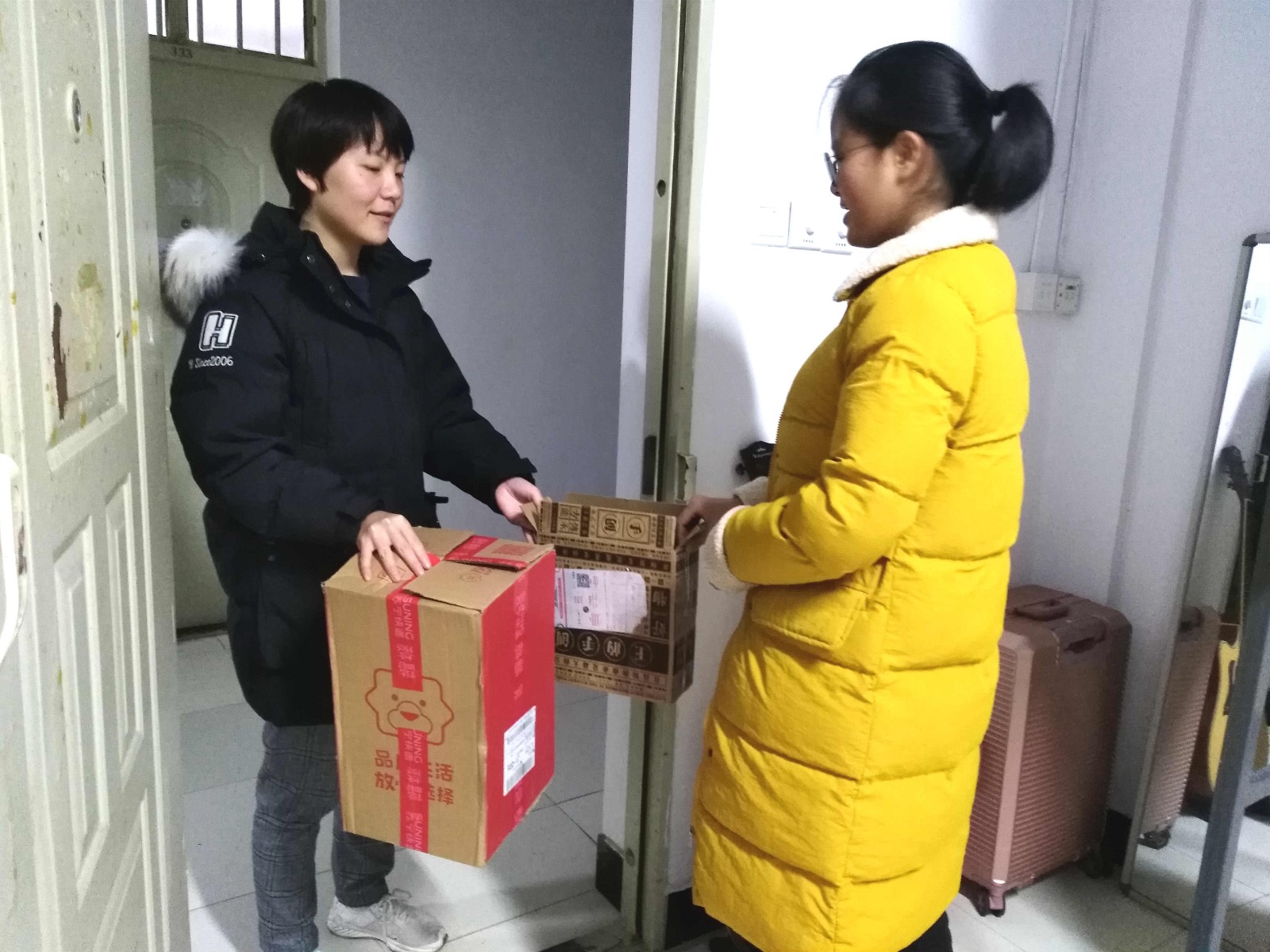 四名志愿者提前5分钟在31栋大厅集合,在活动开始之前,负责人袁秀与检察员高心雨讨论并分配小组和具体任务。志愿活动中,在监察员的协同下,每2名志愿者为小组单位下寝回收快递纸盒。志愿者们礼貌敲门,微笑表明自己的来意并对唐突的打扰致以歉意,充分体现作为一名志愿者的文明和友爱精神。同学们对志愿者的帮助表示感谢,并赞许此次活动非常有意义,有利于减轻寝室卫生负担。临近活动结束,志愿者们汇集各个楼道的纸盒,折叠整理大小不一的纸盒并送到宿管阿姨的房间,宿管阿姨对志愿者们表示真诚的谢意与赞赏。