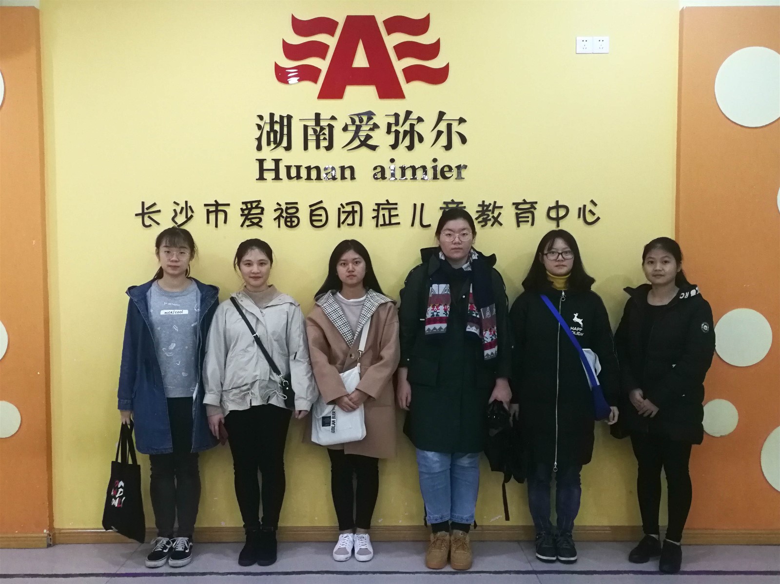 六名志愿者于13:40到达长沙市爱福自闭症儿童教育中心,在办公室内听从老师的安排,知晓自己的工作,等候小朋友们午睡醒来。第一节课是音乐课,志愿者们引领小朋友们到教室并帮助他们脱下并放置好鞋子,带他们坐好等待老师进行上课。上课时,志愿者们帮助小朋友们按照老师的示范动作进行学习,并时刻留意他们是否有跑掉。下课后,老师组织小朋友们一起吃水果,听儿歌。志愿者们在一旁帮助维持秩序。第二节课老师教小朋友们进行认识各类小动物,志愿者们坐在他们的后面引领他们认真听老师的讲述。