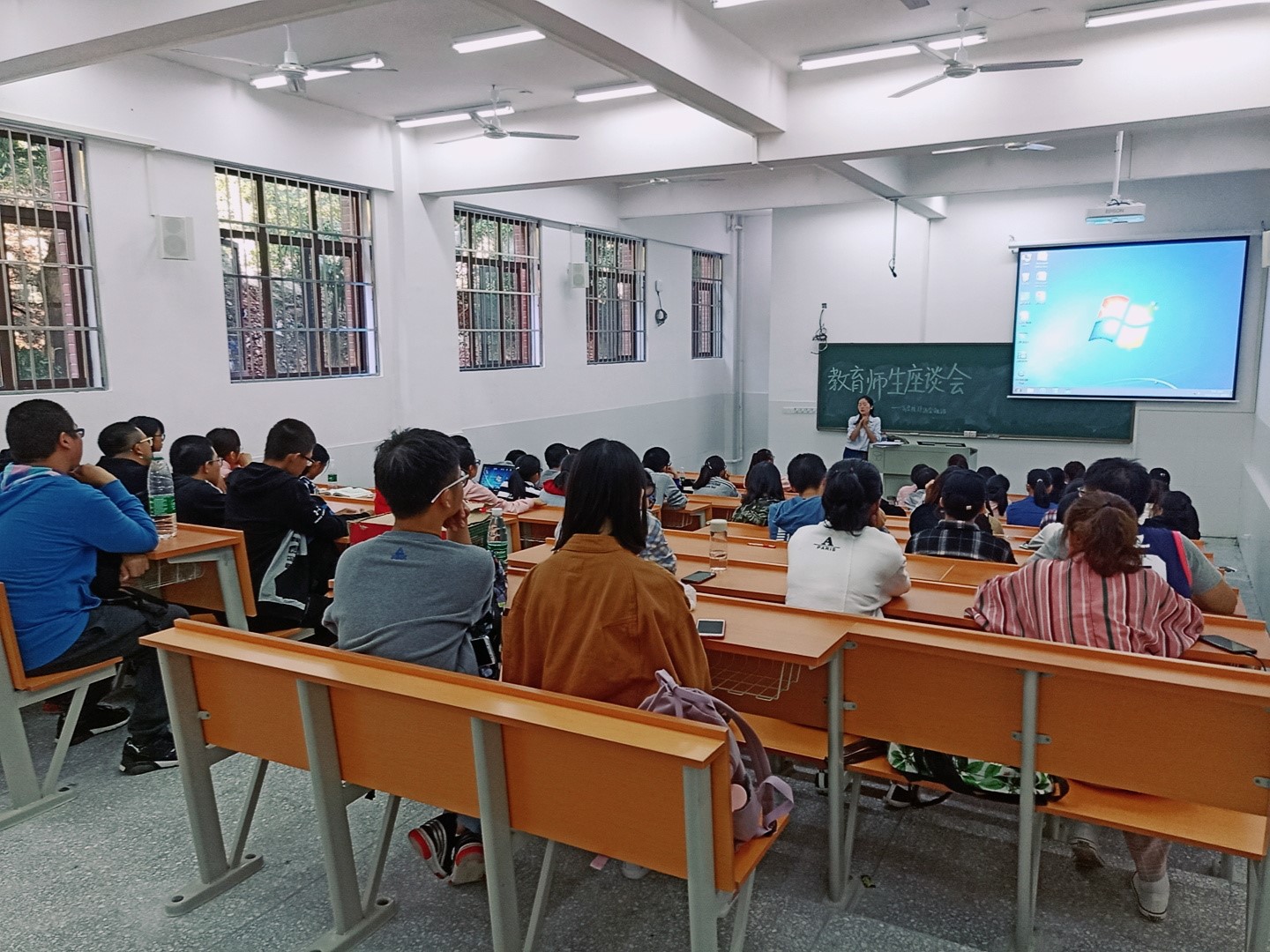 10月12日下午,2018级金融班在新理化楼112教室举行教育师生座谈会,班导师陈彬参加此次座谈会,班长孟欣瑜、学习委员周雨霏担任主持人。