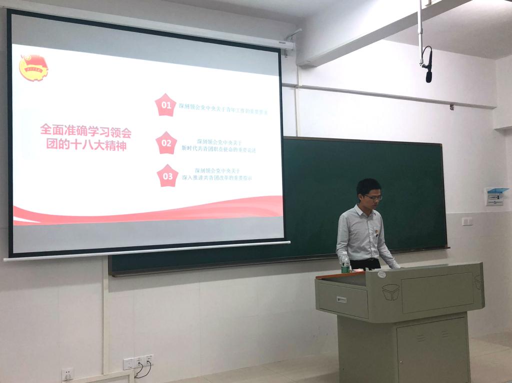 此次活动以“学习‘7.2’重要讲话精神”为主题。具体内容包括三个方面——全面准确学习并领会团的十八大精神、持续广泛开展务实有效的学习和宣传工作、切实加强组织领导。第一个环节,洪鹏飞带领大家学习了党中央关于青年工作的重点要求、党中央关于新时代共青团职责使命的重要论述以及党中央关于深入推进共青团改革的重要指示,让同学们领悟党的精神。活动期间,洪鹏飞组织同学们观看“7.2”讲话的视频。活动最后,全班同学进行宣誓,以重温入团誓词的方式牢记自己的使命,始终不忘初心。