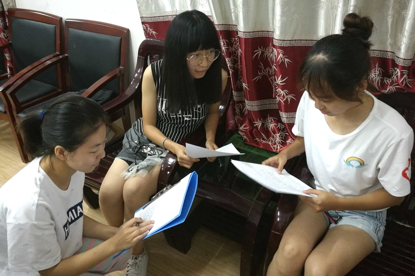 通话开始前,调研组组员对近期调研成果进行总结,对调研中出现的问题进行汇总分析。截止22日上午,调研组共回收游客问卷150余份,农户问卷100余份。组内计划于后续三日内完成问卷的发放和收集。调研中出现的主要问题在于无法回收原定的问卷数量,天气炎热的夏天属此类景区的淡季、景区及景区周边的发展状况不一等原因造成问卷数量限制。