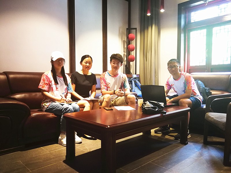 调研三组的调研以桃花源古镇建立与完善对桃花源景区的带动作用为主题。到达桃花源古镇后,小组集体成员联系到了古镇的运营负责人——易经理,对桃花源古镇的建立与完善进行相关的访问。他们向易经理就桃花源古镇运营曾遇到的难点、古镇商铺从零星到繁华的发展等提出问题。
