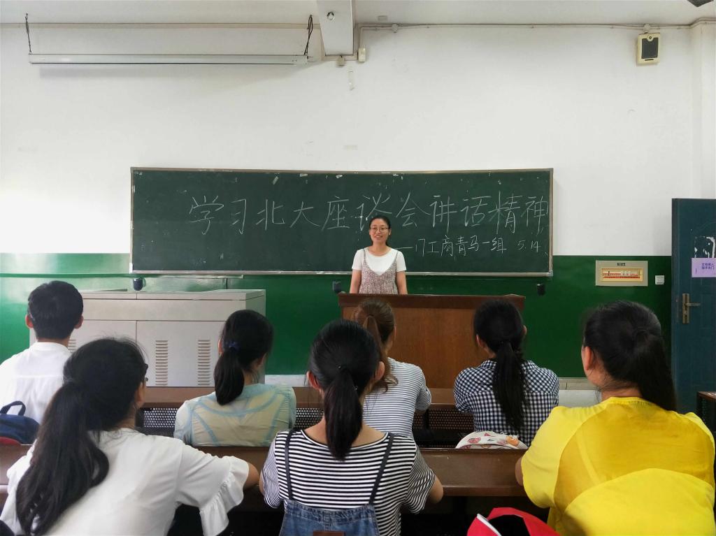 5月14日下午,2017级工商班青马小组一组在体新403教室开展了主题为“学习北大座谈会讲话精神”的交流研讨活动。此次活动由组长赵茜主持,工商班青马小组一组全体成员参与。