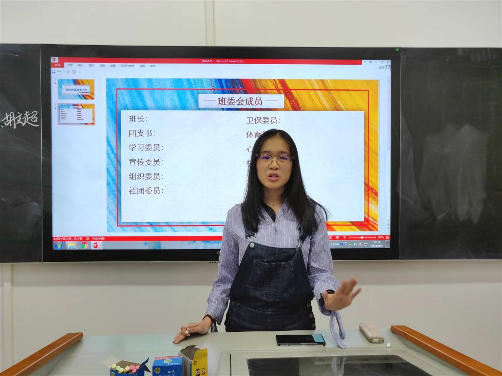 为了使同学们更加了解班委的具体工作并积极参与竞选,谢京津首先组织上届班委成员进行一年的工作总结,介绍各自职务所要开展的日常工作,鼓励同学们积极参选,为班级事务做贡献。
