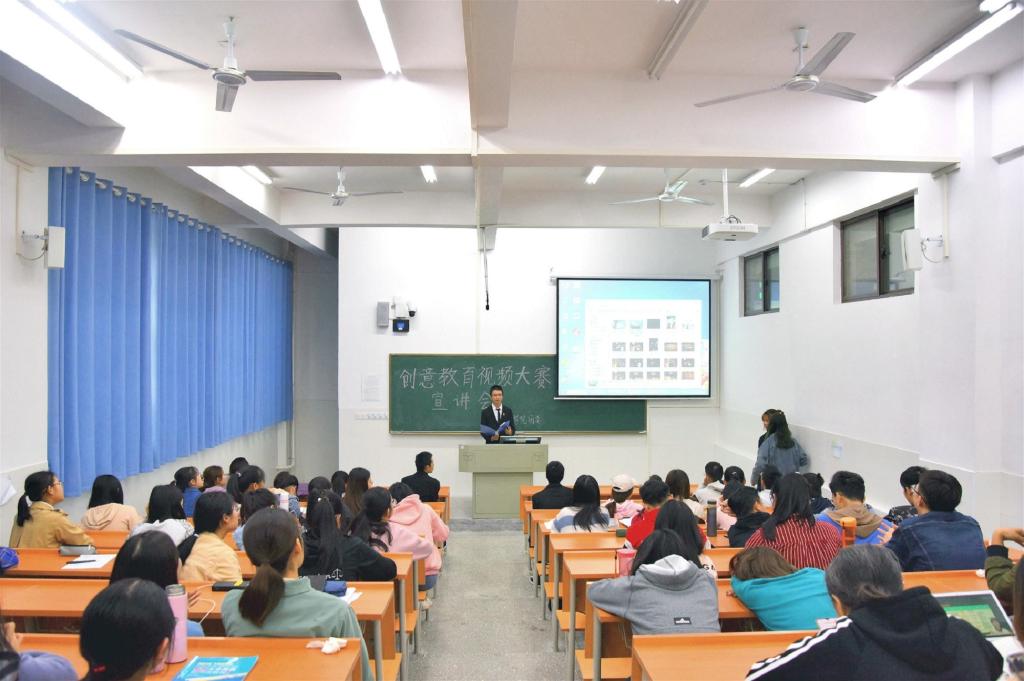 (通讯员 成思婷 苏雅萱 程一诺)11月11日中午,商学院在中和楼113教室举行了创意教育视频大赛宣讲会。商学院团委学生副书记兼青年传媒中心主任李鸿宇,影音部部长郭依泓担任主讲人,此次宣讲会由青创项目部干事曾琦钧主持。