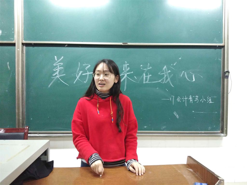 (通讯员 叶金萍 赵雅茹 付涵燏)11月13日中午,2017级会计班青马学习小组于景德楼101教室举行“美好未来在我心”主题活动,旨在学习习近平总书记在庆祝中华人民共和国成立70周年大会上的重要讲话精神。本次活动由组长李静主持。
