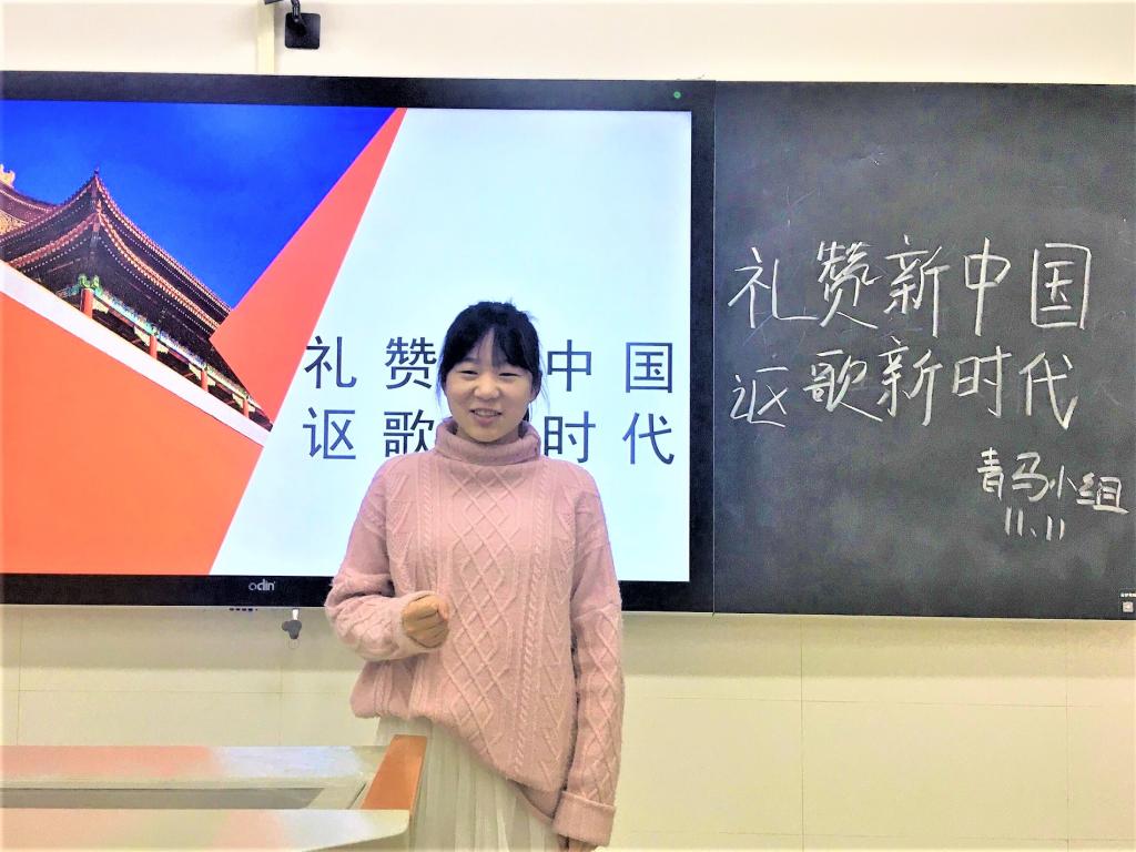 会上,小组成员回顾了中华人民共和国成立70年来一路走过的风风雨雨,取得的光辉成就,就当下祖国的发展展开了激烈讨论。青马小组组长马玲玲提出:“70年春华秋实,70年砥砺奋进,新时代的中国一派新气象,将在以习近平同志为核心的党中央团结各民族带领下继续攻坚克难。”其余小组成员也纷纷表达了对新世纪中国未来的畅想,赞扬了新时代祖国的繁荣富强。