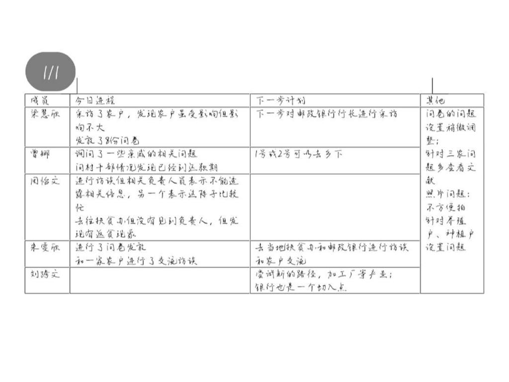 在此次会议中,调研一组各成员分别阐述了各自的调研进展和所遇到的相关问题。其中调研对象数目少,访谈机构多碰壁,疫情冲击不明显等是大多成员遇到的共同难题。小组组长张艳与指导老师阳旸商讨决定多方面了解政府扶贫政策,通过网上发放问卷增加调研的覆盖面,并将农村大型养殖户、种植户等作为主要调研对象。会议最后,张艳鼓励成员们克服困难,继续实地调研以获得更加充足的信息。