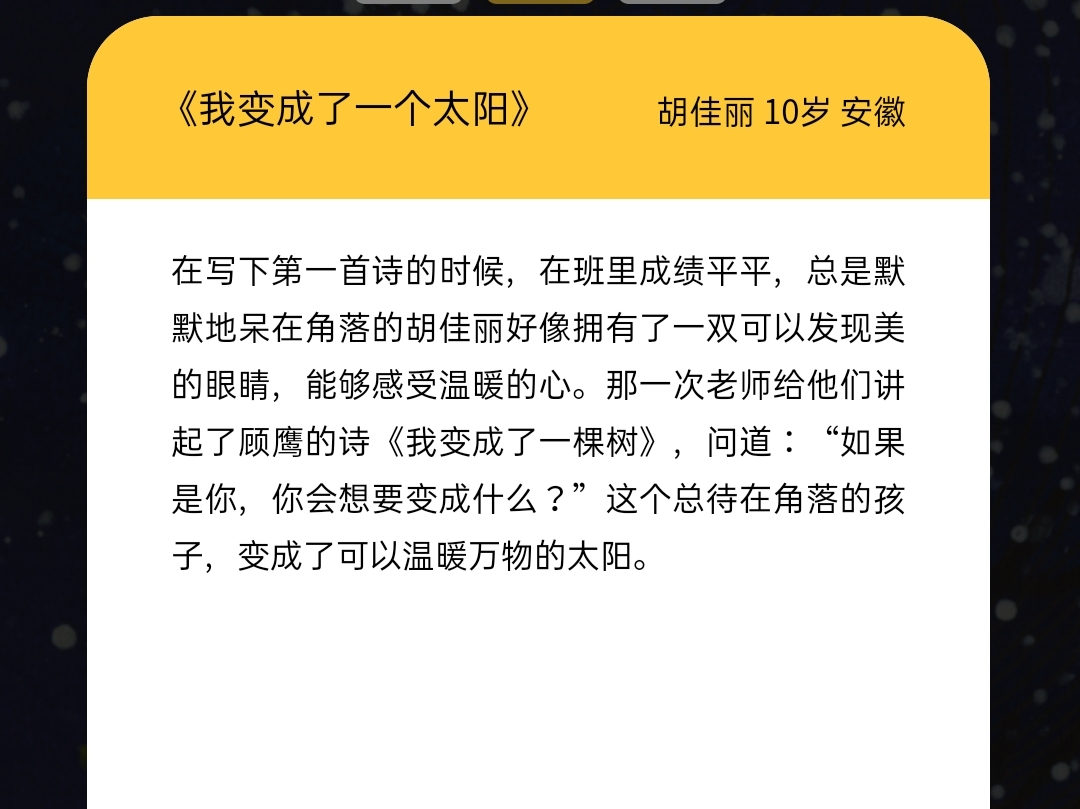 为了打破时空的阻隔,让更多的人看到大山里孩子们的创作,西部阳光基金会将孩子们的诗歌与绘画作品上传至“诗里的童年”小程序中。志愿者在活动期间,进入“诗里的童年”微信小程序,选择合适的画作、小诗和配乐,完成一次艺术品的再创作,创作完成后将作品进行拍卖获得阳光值,将阳光值捐赠后即可为孩子们赢得免费的公益课。