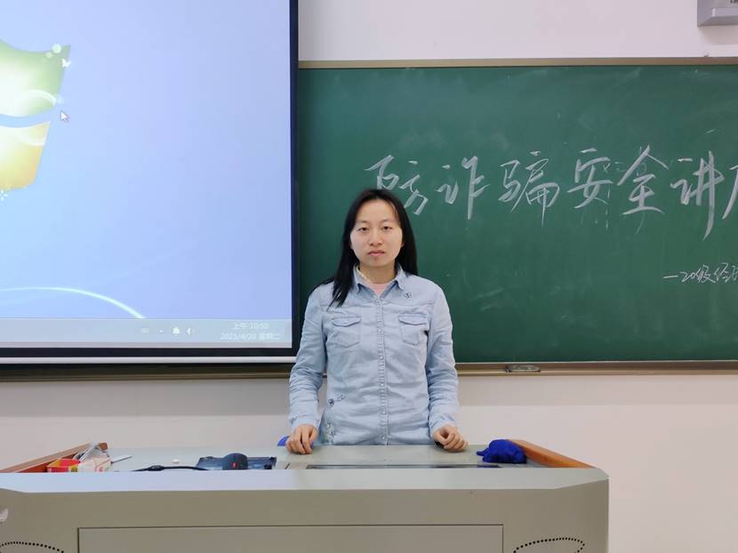 (通讯员 张卓 毛湘瑾)4月20日下午,20级经济班在中和楼211教室开展防诈骗安全知识讲座。此次讲座由20级经济班权益委员向韵芝担任主讲人。