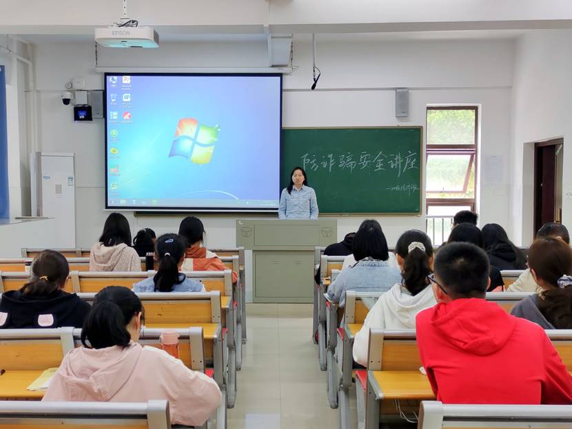 向韵芝就电信诈骗常用的六种手段、电信诈骗的特点以及如何有针对性地防范电信诈骗三个方面展开了重点讲解。她结合身边的案例,对目前同学们容易上当受骗的原因进行分析,描述犯罪分子是如何利用同学们法律知识欠缺的弱点实施诈骗行为。同时,向韵芝提醒同学们在日常生活中要提高警惕,对犯罪分子的花言巧语、危言恐吓,一定要保持冷静,并介绍了一些简单实用的应对方法,告诉同学们要树立反诈骗意识,提高识别和防骗能力,切莫因贪图利益而遭受损失。
