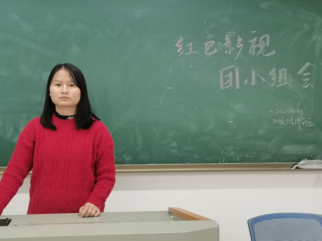 (通讯员 张靖铃 刘思诒 杨凤鸣)10月21日上午,由商学院20级经济班组织的以“红色影视”为主题的团小组会议在中和楼211教室开展,组织委员石明秋担任此次会议的主持人。