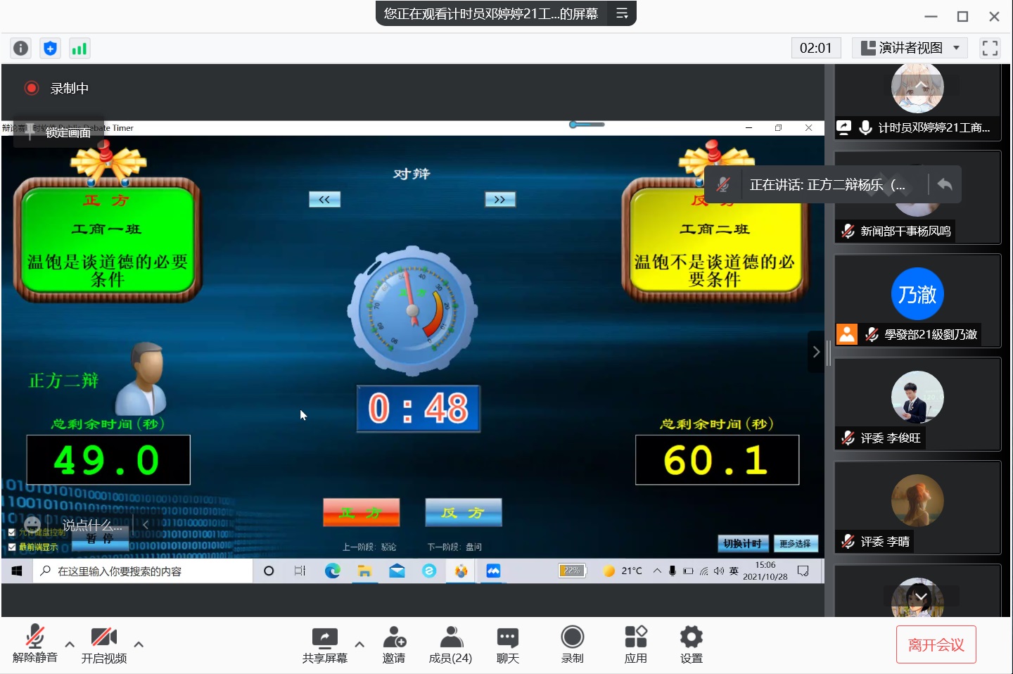 (通讯员 谢孟洁 杨凤鸣)10月28日下午,商学院于线上举办2021级第二轮新生辩论赛班赛。商学院、法学院等院9位辩论队成员担任评委。