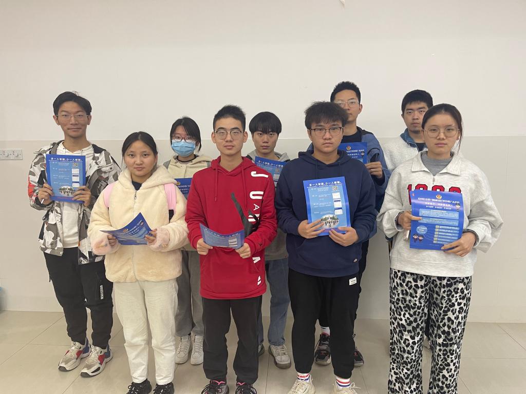 为了确保活动流程顺利进行,张荻提前对志愿者们进行培训,明确此次活动的目的以及任务分配。活动过程中,志愿者们向同学们发放反诈骗传单并向他们介绍反诈骗的意义和应对措施等方面的知识,提醒同学增强防骗意识,对他们的热情参与表示感谢。活动结束后,志愿者们在中和楼合影留念。