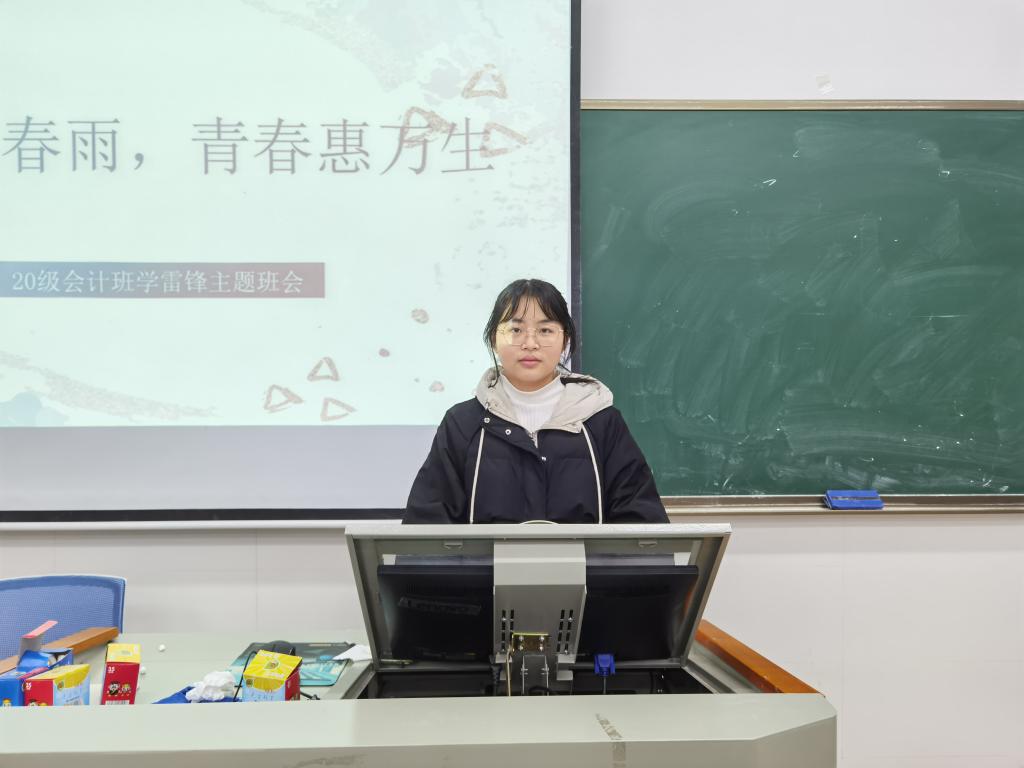 (通讯员 龚晨曦 林若昕 顾乐)3月21日下午,20级会计班在中和楼212教室开展以“学习雷锋精神”为主题的班会活动。20级会计班青志协小组长龚晨曦为此次班会的主持人。