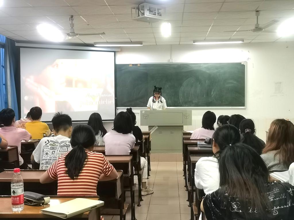 活动主要围绕感悟心理健康电影、分析心理健康案例和畅玩心理健康游戏三个方面展开。梁宵播放励志电影《穿普拉达的女王》的视频剪辑,并简单介绍影片中女主人公如何从“灰姑娘”变成“女王”。观看电影剪辑后,同学们对此次班会的主题有了简单的了解。通过将分析心理健康案例与畅玩心理健康游戏相结合,梁宵带领同学们进行更加深入的心理健康知识学习。此环节主要是进行数字炸弹游戏来选出同学分析心理健康案例,学习心理健康知识。活动尾声,梁宵向大家简单介绍辅导员创办的树洞箱,同时鼓励同学们积极和老师交流生活和学习上的困难与压力。