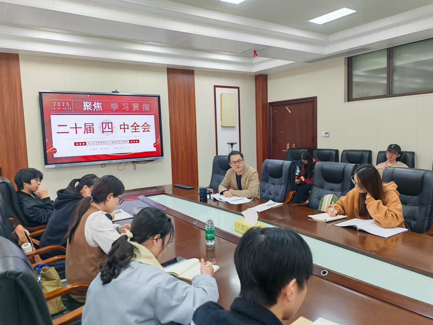 会上,研究生理论经济学学位点党支部宣传委员张子旭带领全体同志深入学习党的二十届四中全会精神,详细解读了全会工作报告及《中共中央关于制定国民经济和社会发展第十五个五年规划的建议》的核心要义。