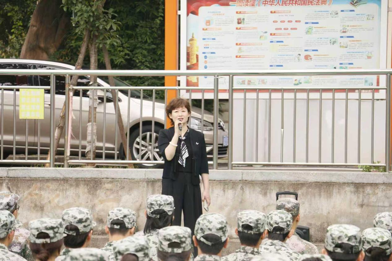 龚舒详细询问军训安排与学生身体情况,观摩训练展示,并代表学院向新生表达了亲切慰问,转达了全院师生对同学们的关爱。她以“爱自己”“爱同学”“爱校院”三个“爱”寄语新生,勉励同学们积极投入训练,磨练意志,以饱满热情和坚韧毅力投入接下来的大学生活。学院领导向教官致以诚挚感谢,送上学院精心准备的纪念礼品,并来到伤病连进行慰问,逐一了解伤病学生的身体状况,叮嘱大家注意休息,在确保健康安全的前提下顺利完成军训任务。