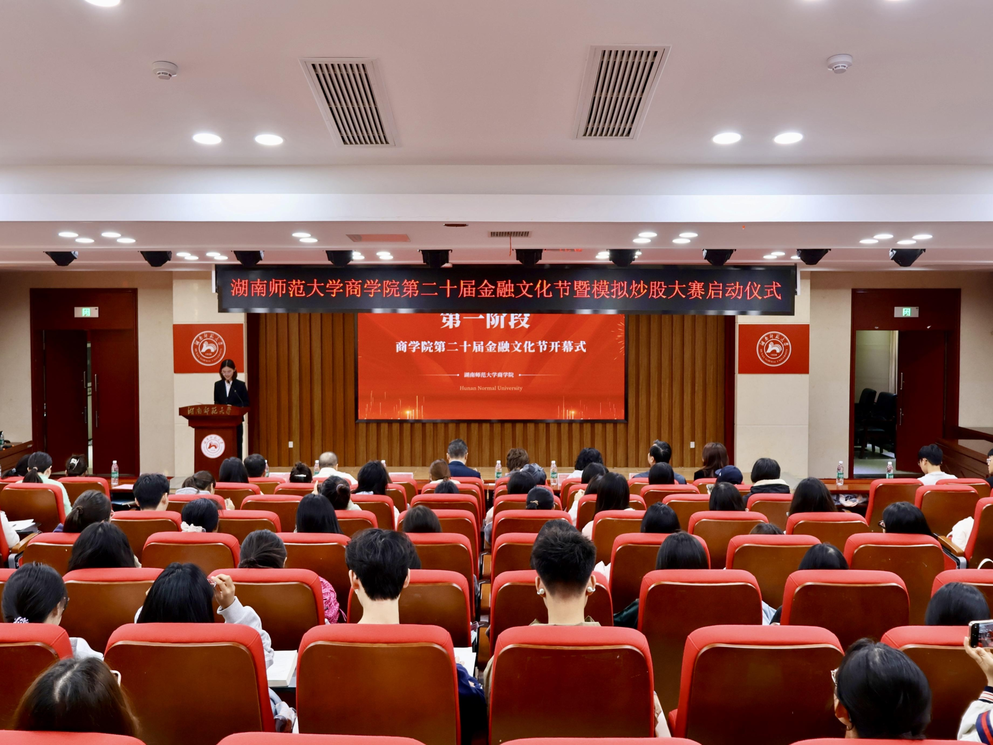 (通讯员 夏靖霖 卢艺婷 曹佳伟)10月23日下午,我院在中和楼129报告厅举办第二十届金融文化节暨模拟炒股大赛启动仪式。我院党委书记龚舒、副院长(主持行政日常工作)曹虹剑、党委副书记刘杰、MBA中心主任蒋才芳、金融协会指导老师马倚虹,东方财富证券岳阳营业部总经理陈华、客户经理黄盼出席此次活动。2025级本科生吴昕冉担任此次活动主持人。