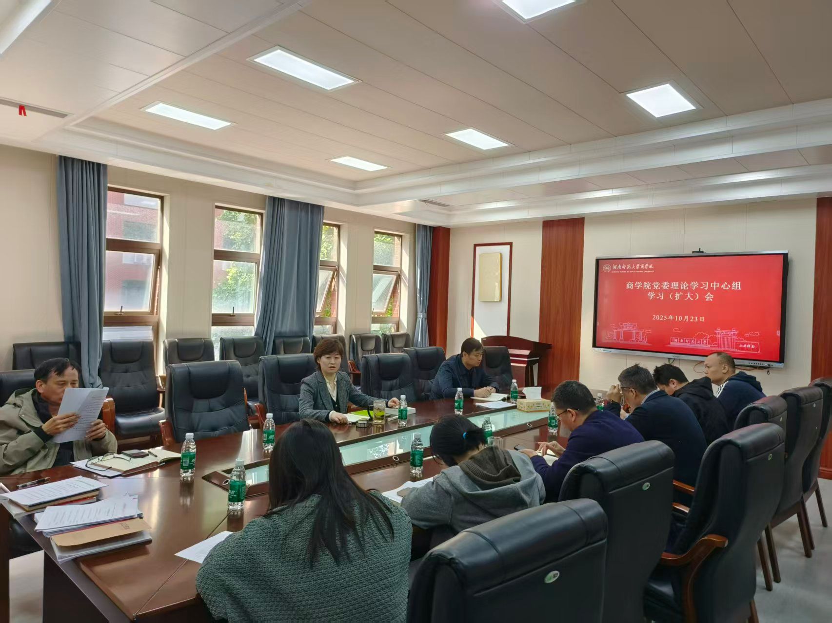 10月23日,商学院在中和楼304会议室召开党委理论学习中心组(扩大)会议。全体院领导、党委委员出席,院党委书记龚舒主持会议。