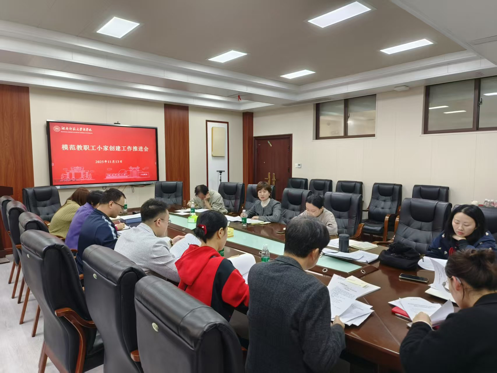 2025年11月13日下午,商学院召开“模范教职工小家”创建工作推进会。院党委书记龚舒、副院长杜平出席,学院工会委员及相关工作骨干参会,会议由院党委书记龚舒主持。