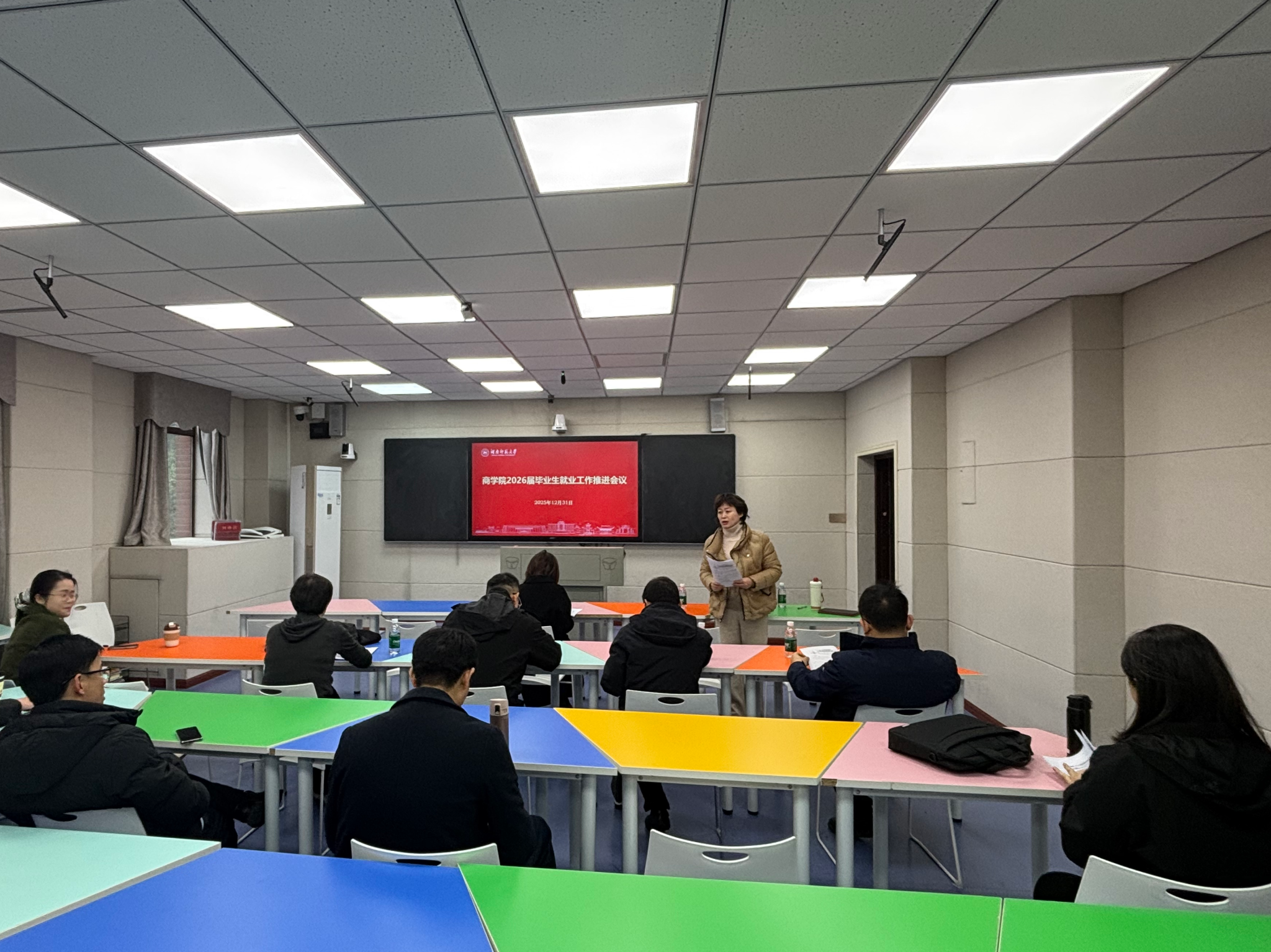 当日中午,我院在 315 教室召开 2026 届本科毕业生就业工作推进会。会上,2022级辅导员舒怡汇报了当前本科毕业生就业总体情况,通报各专业就业率数据并与去年同期对比分析,详细梳理未就业学生现状,明确重点帮扶对象,为后续针对性工作提供数据支撑。学院党委书记龚舒肯定了前期就业工作成效,强调了年末就业冲刺阶段的紧迫性和重要性,要求各系凝聚工作合力,发动论文指导老师将就业指导与论文指导深度融合,聚焦特殊学生群体建立精准帮扶机制,切实解决毕业生就业难题,推动就业工作提质增效。