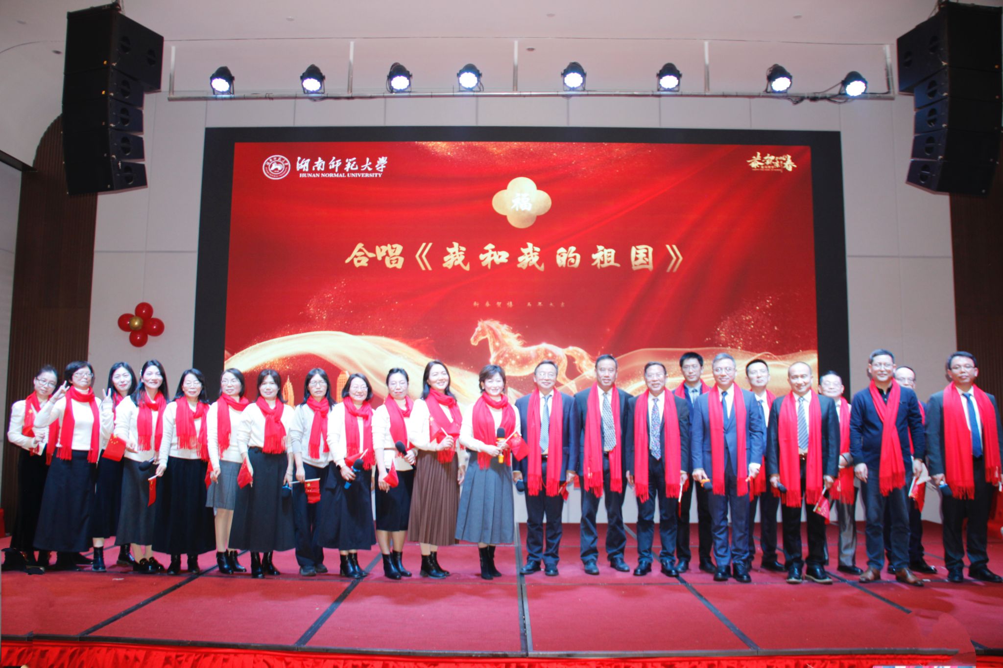在精彩的文艺表演环节,来自工会委员、行政人员和教师代表的17位女教职工带来舞蹈新编《饿狼传说》,动感舞姿瞬间点燃现场气氛;7位在读幼儿园的小明星献上幼儿歌舞串烧,天真烂漫的演绎引得全场阵阵掌声;学院领导班子、行政办公室代表携手李军、何勇、刘杰三位特邀嘉宾,以普通话与方言交融的独特形式带来诗朗诵《我爱上班》,幽默中饱含温情;李姣、向晖、王新、滕莎四位老师演唱的经典老歌《漫步人生路》婉转悠扬;青年教师组带来的话剧《真男人》情节生动、笑点密集;工会不老舞团的男老师们演绎舞蹈串烧《大展鸿图+青苹果乐园》活力四射;系主任们带来朗诵《立德树人担使命,五系同心开新篇》,彰显了教育工作者的责任与担当。压轴环节中,由20多位教授博导组成的“实力唱将合唱团”,携手刘怀德校长、龚舒书记、曹虹剑副院长等领导,共同唱响《我和我的祖国》,悠扬歌声中满是对祖国的热爱与对教育事业的赤诚。
