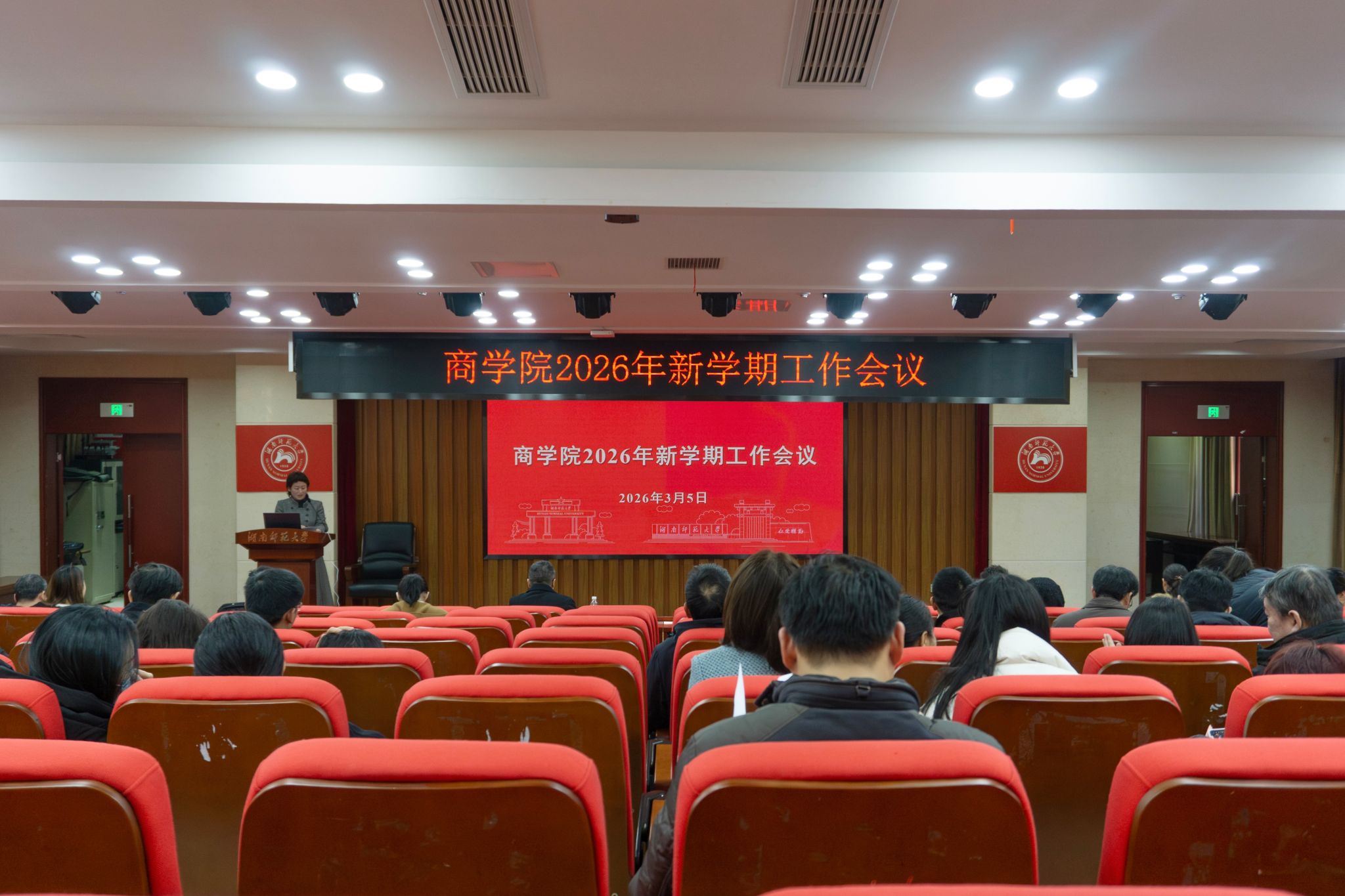 曹虹剑作新学期工作报告。他向全院师生致以新年的美好祝福,从党建思政、学科与学位点建设、人才培养、科学研究、队伍建设等五个方面总结了2025年学院取得的主要成绩,肯定了全院师生做出的努力与贡献。他分析了学院发展面临的形势,系统部署2026年重点工作。他强调,学院在新的一年要锚定国家战略需求,科学谋划“十五五”,深化人才培养改革,健全有组织的教学科研机制,推动学科交叉融合,激发学院创新活力,举全院之力全力迎接新一轮学科评估,实现学院事业发展新的突破。