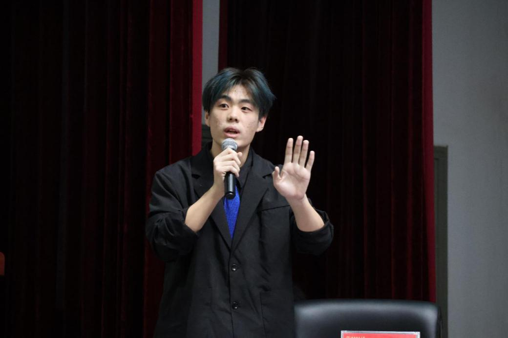 比赛开始前,校学社管同学演唱开幕歌曲。校辩论队队长、我院2023级本科生林天悦致辞。他总结校辩论队今年的比赛成果,介绍举办“蓝田杯”的意义:秉承“仁爱精勤”的校训精神,弘扬师大思辨文化。