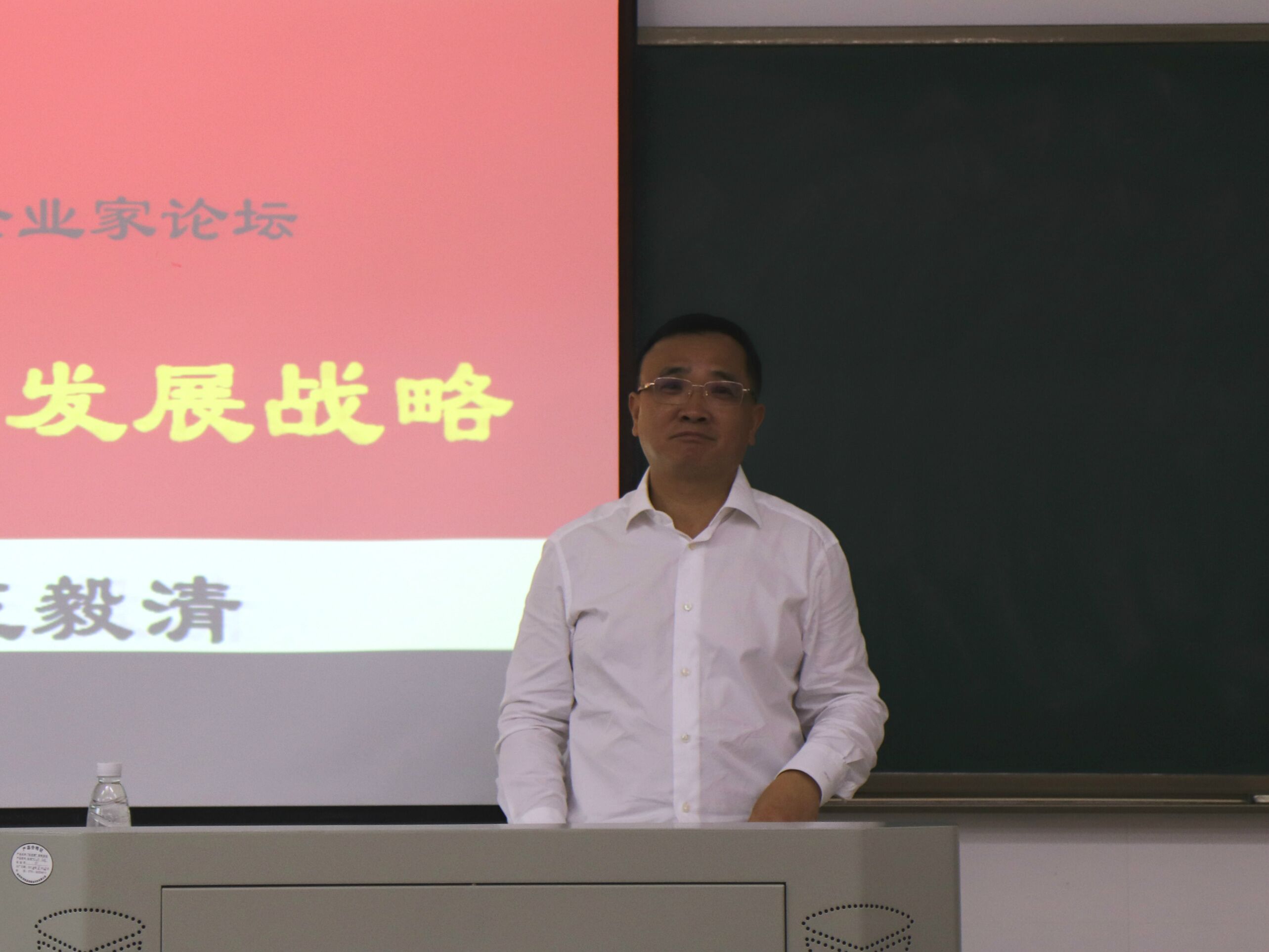 (供稿 科研办)5月19日上午,我院承办的“创新创业与企业家论坛”进入第三讲,湖南达嘉维康医药集团公司董事长、岳麓区人大代表、常务委员会委员王毅清先生受邀莅临我院,在商学院中和楼319教室主讲《新时代企业的发展战略》。我院院长李军出席并主持论坛。