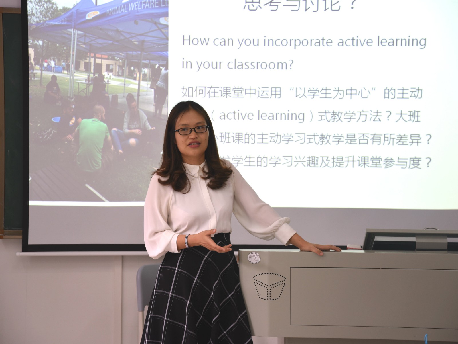 现场交流环节,与会教师就如何在课堂中运用“以学生为中心”的主动学习式教学方法展开热烈讨论。阳毅借鉴昆士兰科技大学的教学理念,认为有效教学模式因教学目标、教学内容、教学对象而异。大学教师应该将学生视为独立终身学习者,准确识别学生的学习目的和需求,确保学生在学习过程中始终保持主动思考和积极参与,实现从简单的记忆知识向深层次的利用和创造知识转变。