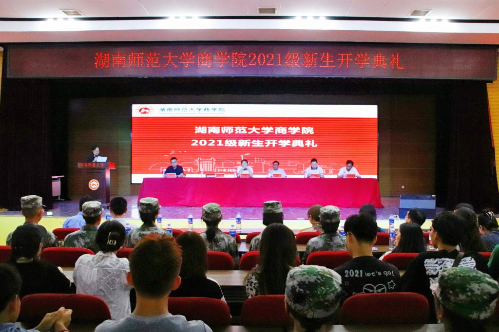 (通讯员 邬明佳)9月20日下午,商学院在励德楼江边活动中心举行21级新生开学典礼暨军训动员大会。院长李军,院党委副书记陈君,副院长李红权、曹虹剑、杜平,院长助理、营贸系党支部书记罗富政,金融系主任谭政勋,营贸系主任洪联英,经济系主任蔡兴,会计系主任马巾英,管理系主任阳毅出席此次活动。活动由院党委书记何勇主持。