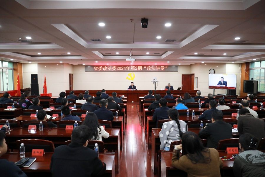 省委政法委全体机关党员干部参加,14个市州党委政法委党员干部通过视频会议系统在各自分会场参会。