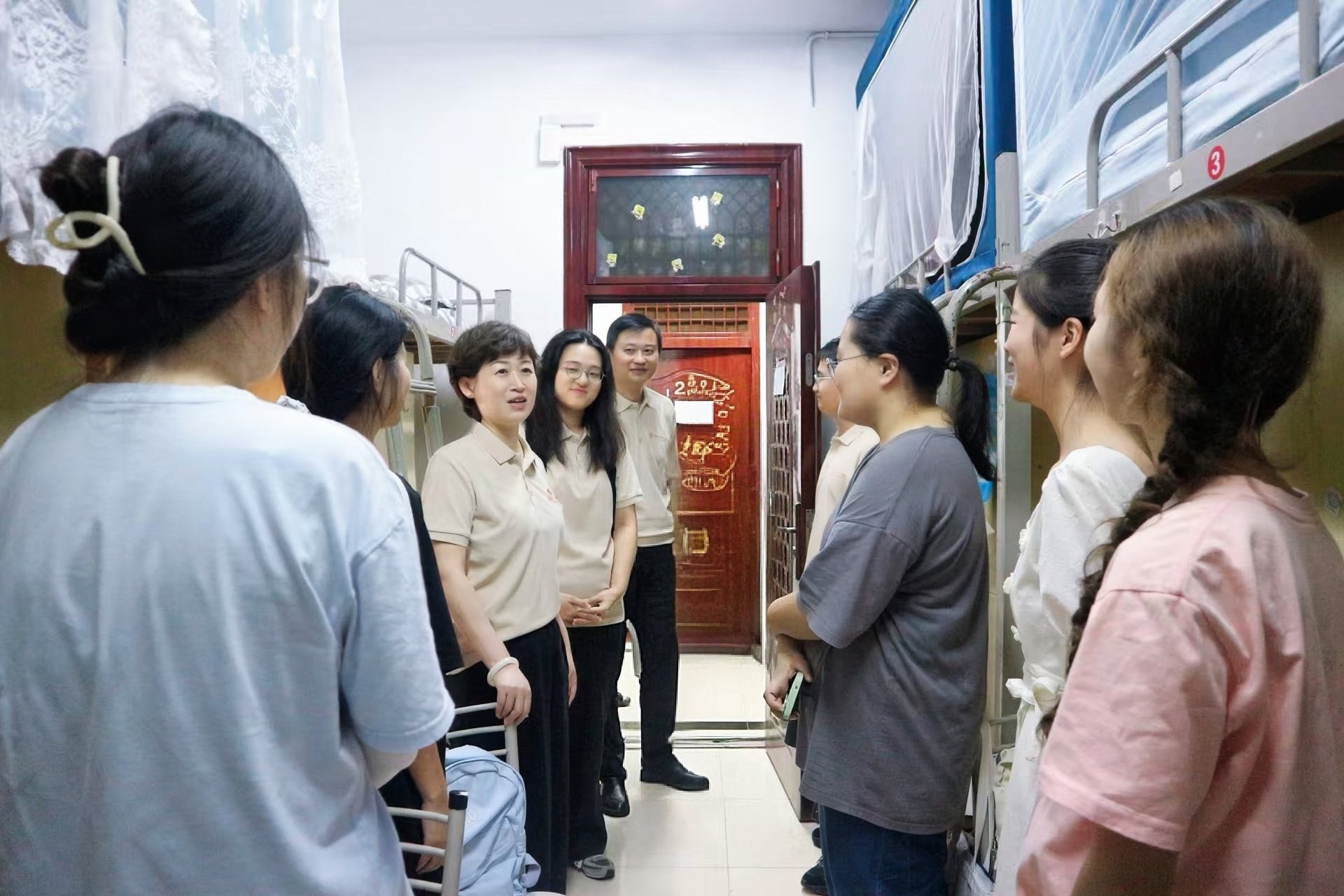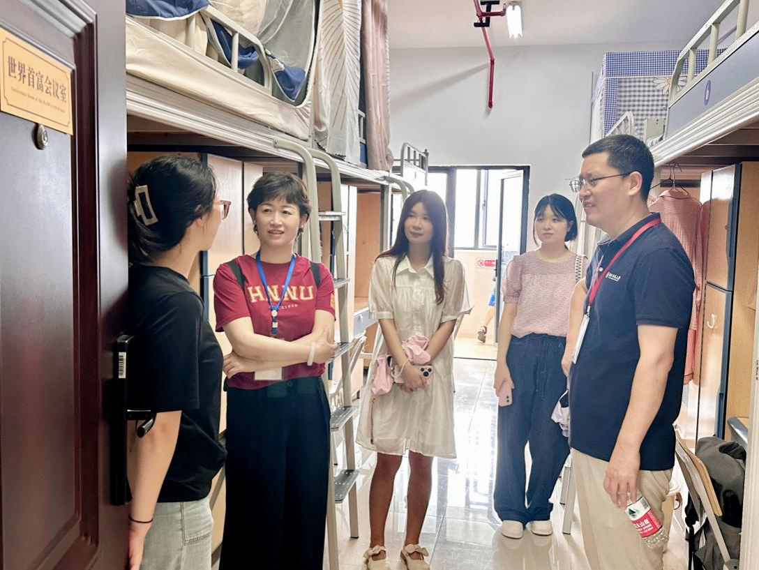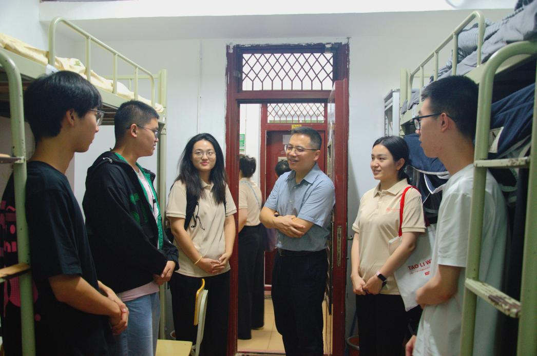 龚舒、曹虹剑、刘杰和李红权分别带队前往桃花坪校区本科生宿舍和咸嘉湖校区研究生宿舍看望商学院2025级新生,与新生及家长进行了亲切交谈。龚舒向新生们介绍2025级辅导员徐家松,同时鼓励同学们树立继续深造、考研升学的目标。曹虹剑重点介绍了学院的班主任制度,提醒同学们主动与班主任交流,及时解决学业上的困惑。刘杰则从学业规划角度提醒同学们,进入大学应合理安排娱乐时间,积极利用课余时间熟悉图书馆、教学楼等学习资源,尽快适应大学学习与生活节奏。李红权详细了解了研究生新生的饮食习惯、生活习惯和行李搬运情况,与研究生新生就他们的生涯规划、职业目标和商学院的学科建设及发展等多个方面进行了深入交流。