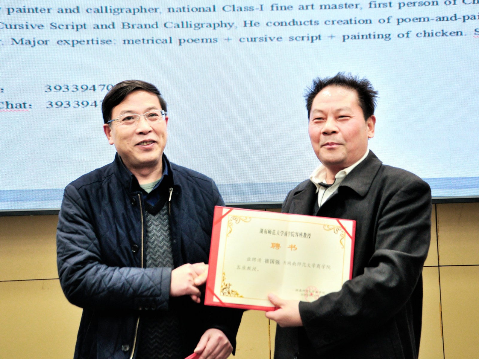 (通讯员 唐彦琪 张曦文 郭诗晨)12月25日晚,中国硬笔书法协会副主席、湖南省硬笔书法家协会主席崔国强教授在至善讲堂为商学院师生作主题为“书法之美—崔国强论书法”的人文素质系列讲座。讲座由商学院院长李军主持。