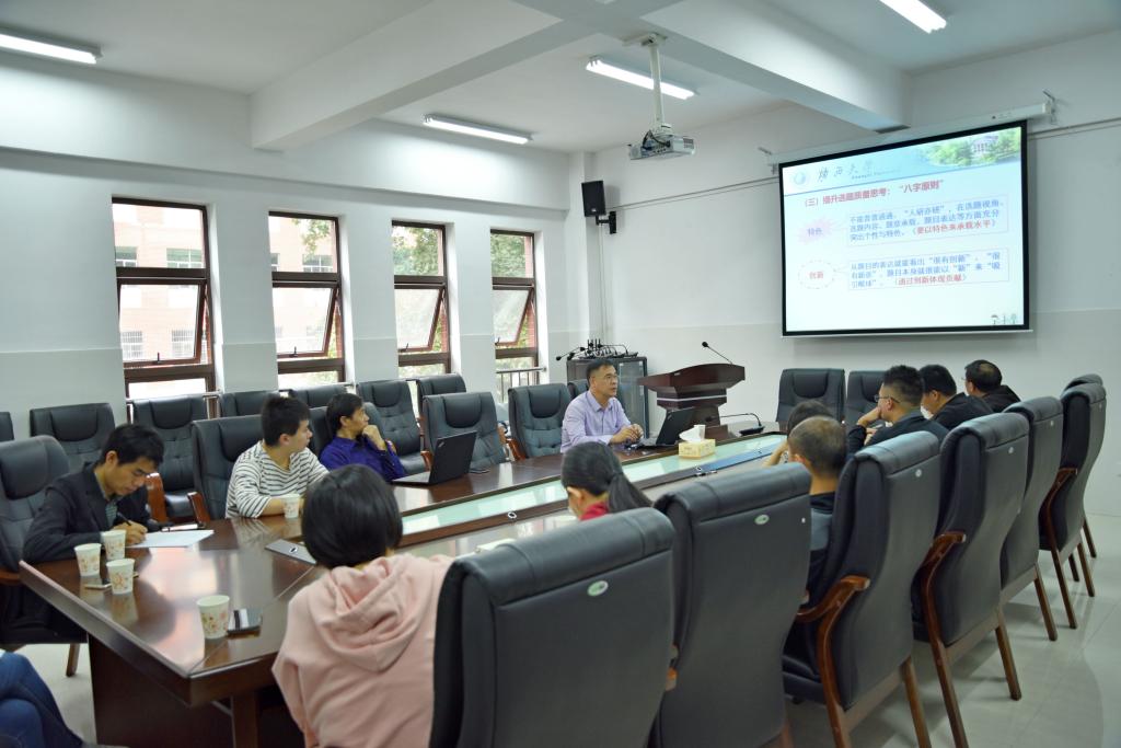 (供稿 科研办)10月11日上午,广西大学黎鹏教授受邀做客我院,在学院304会议室就国家课题的申报、执行和结项作专题报告,院长李军出席讲座。