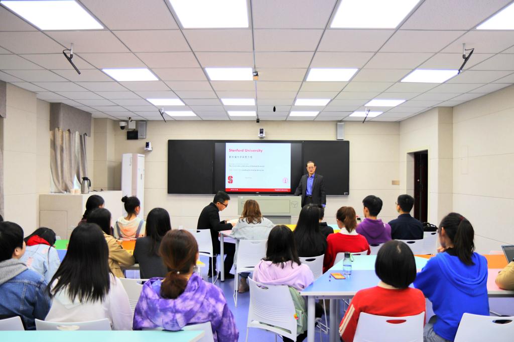 王京从斯坦福大学的地理位置、历史起源、校园建设、学院与研究机构设置和人才培养理念等方面介绍了这所研究型大学。斯坦福大学旨在培养对社会有奉献精神的人才,注重培养学生的创造性思维和创新能力。斯坦福实行一年四个学期的学制,让学生自由地选择各种课程,同时创立了休学制度,允许学生自由的休学一年去创业,这样相对宽容和自由的环境造就了斯坦福的学生具有高度的企业家精神和很强的创业能力,培养了一大批世界级企业家。王京还回顾了胡佛研究所的发展进程和中国的渊源,并鼓励同学到斯坦福大学等世界知名学府学习深造。