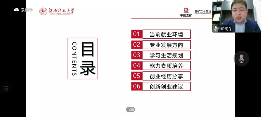 主讲人简介:邱智军,中共党员,中国人民大学硕士;高级经济师、管理咨询师、生涯规划师;湖南未来无忧教育科技有限公司总经理,五矿二十三冶知行学院副院长;中国人力资源开发研究会企业人才分会常务理事,湖南省省级职业指导专家团成员,长沙市青年企业家协会理事;湖南大学社会导师,中南林业科技大学硕士研究生指导教师;湖南大学等多所高校学生发展顾问委员、就业指导导师;银行、通信、建筑地产等多个央企国企特聘面试官。
