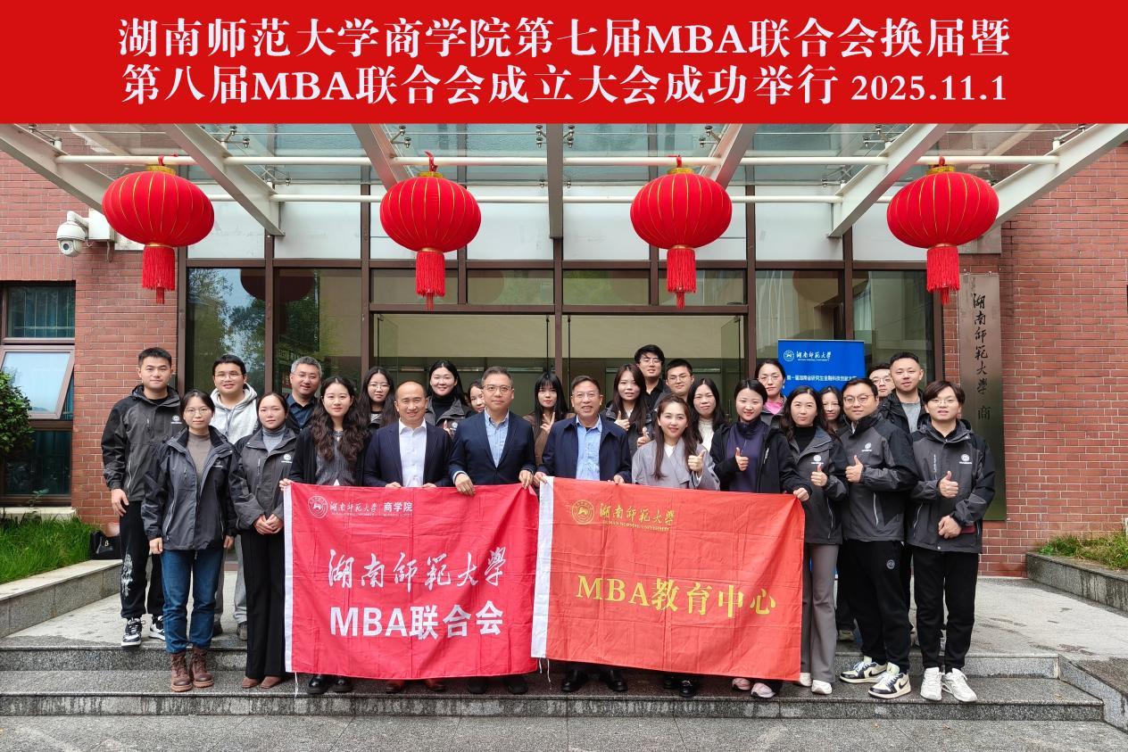(通讯员:罗方滨)2025年11月1日,湖南师范大学商学院第七届MBA联合会换届暨第八届MBA联合会成立大会在中和楼401教室举行,商学院原院长、MBA学位点负责人李军教授,副院长(主持工作)曹虹剑教授,MBA学位点执行负责人、中心主任蒋才芳教授,MBA教育中心滕莎老师出席会议。