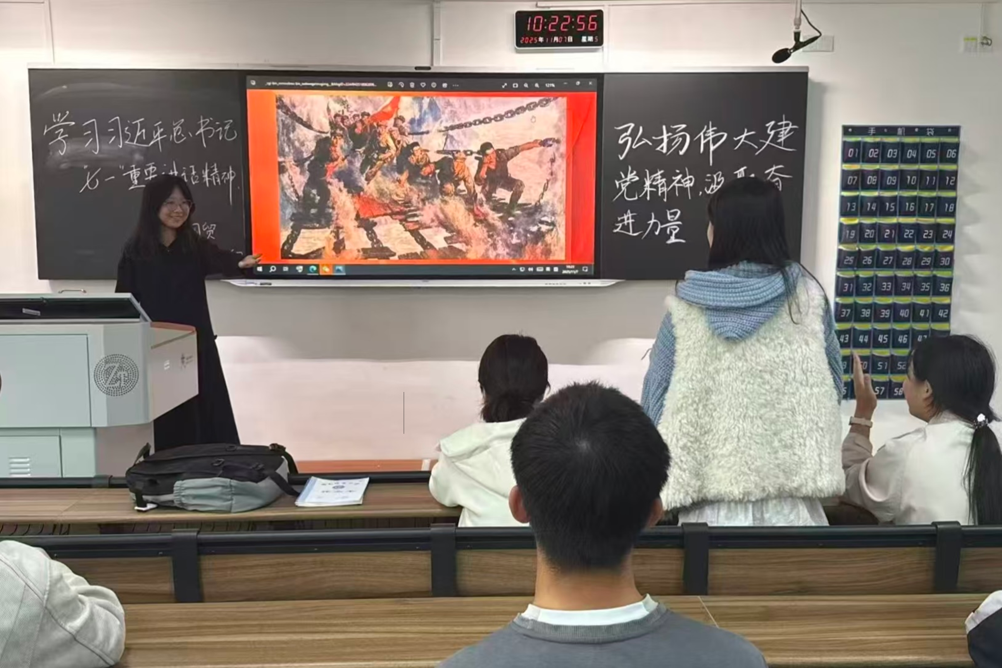 (通讯员 闵晨璐 詹雅雯 卢艺婷)11月10日上午,2025级国贸班青马二组于桃花坪校区第四教学楼501教室开展以“弘扬伟大建党精神,汲取奋进力量”为主题的小组学习活动。小组成员肖康佳担任此次活动主持人。