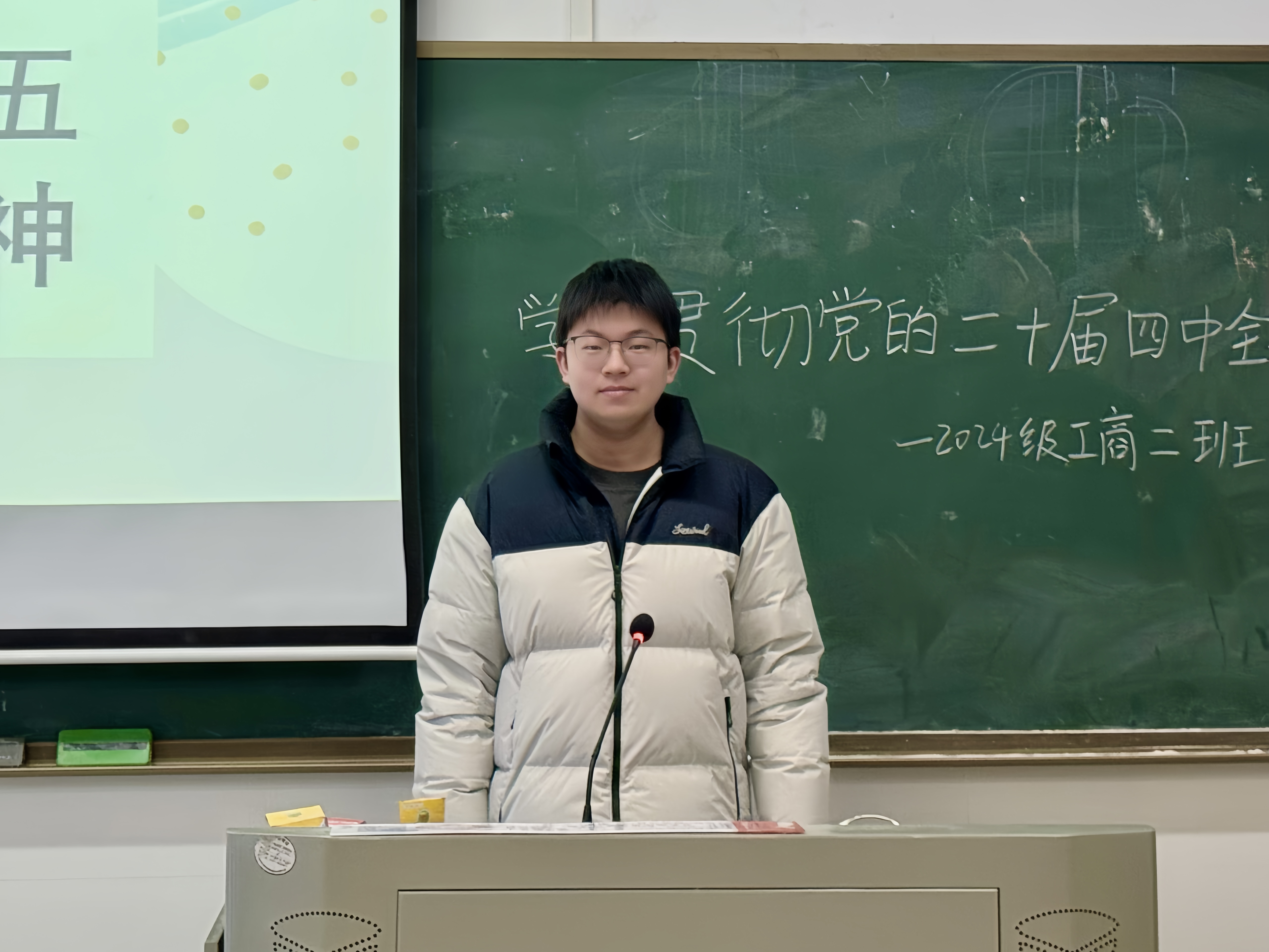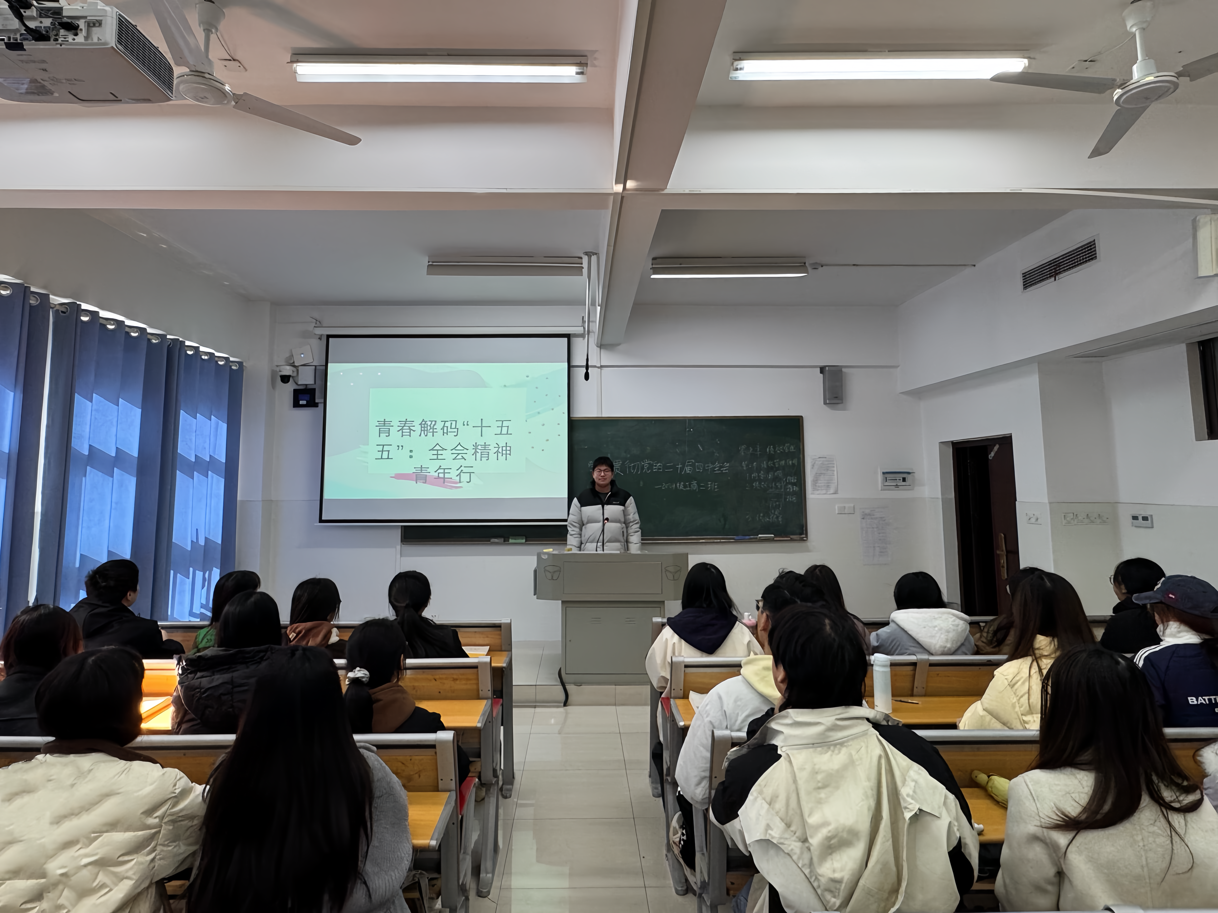 (通讯员 曹佳伟 刘雅宁 周昕芮)11月21日上午,2024级工商二班在中和楼202教室开展“青春解码十五五,全会精神青年行”主题团日活动。此次活动由团支书曹佳伟主持。