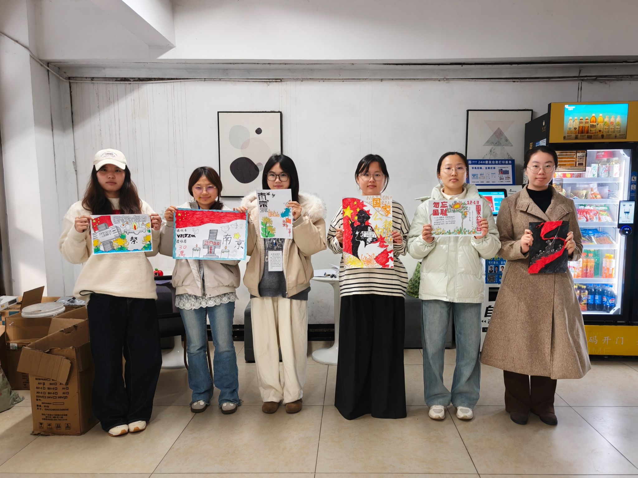 石涵月播放国家公祭日相关视频,并带领志愿者们为遇难同胞默哀。志愿者们分成两组,合作完成多幅爱国海报制作。其中一组以“纪念南京大屠杀遇难者同胞”为主题制作海报;另一小组将白鸽等象征和平的符号与历史剪影相结合创作海报。志愿者们默契完成6幅爱国主题海报。石涵月希望志愿者们能一直铭记国家公祭日并珍惜来之不易的和平。